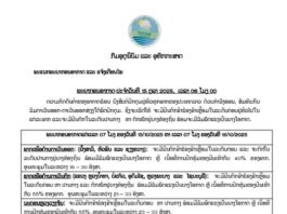 ນະຄອນຫລວງວຽງຈັນ: ອາກາດເຢັນໃນຕອນເຊົົ້າ, ພ້ອມຈະມີລົມ ພັດແຮງເປັນບາງໂອກາດ. ອຸນຫະພູມໃນລະຫວ່າງ 20-32 ອົງສາ.