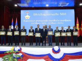 ພິທີໂຮມຊຸມນຸມສະເຫລີມສະຫລອງວັນສະຖາປະນາ ສາທາລະນະລັດ ສັງຄົມນິຍົມ ຫວຽດນາມ ຄົບຮອບ 80 ປີ (2/9/1945-2/9/2025) ໄດ້ຈັດຂຶ້ນໃນວັນທີ 30 ສິງຫາ 2025 ທີ່ນະຄອນຫລວງວຽງຈັນ ໃຫ້ກຽດເຂົ້າຮ່ວມໂດຍມີສະຫາຍ ບຸນທອງ ຈິດມະນີ ກຳມະການກົມການເມືອງ, ຜູ້ປະຈຳການຄະນະເລຂາທິການສູນກາງພັກ, ຮອງປະທານປະເທດ ພ້ອມດ້ວຍບັນດາການນຳຈາກບັນດາອົງການຈັດຕັ້ງ ພັກ, ລັດ, ສະພາແຫ່ງຊາດ, ລັດຖະບານ, ແນວລາວສ້າງຊາດ, ບັນດາອົງການຈັດຕັ້ງມະຫາຊົນ, ອະດີດປະທານປະເທດ ແລະ ອະດີດການນຳພັກ, ລັດ ເຂົ້າຮ່ວມ.