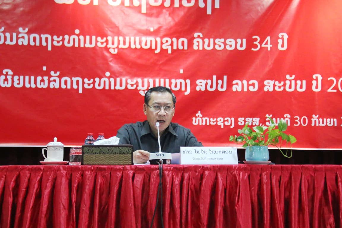 ສະຫາຍ ໂພໄຊ ໄຊຍະສອນ ໃຫ້ກຽດປາຖະກະຖາໂດຍຍົກໃຫ້ເຫັນຄວາມ ໝາຍ-ຄວາມສໍາຄັນ ລັດຖະທຳມະນູນແມ່ນກົດໝາຍພື້ນຖານຂອງຊາດ ທີ່ກຳນົດບັນຫາໃຫຍ່, ຫຼັກການໃຫຍ່ ກ່ຽວກັບລະບອບການເມືອງ, ລະບອບເສດຖະກິດ-ສັງຄົມ, ການປ້ອງກັນຊາດ-ປ້ອງກັນຄວາມສະຫງົບ, ສິດ ແລະ ພັນທະພື້ນຖານຂອງພົນລະເມືອງ, ລະບົບການຈັດຕັ້ງອໍານາດແຫ່ງລັດ (ສະພາແຫ່ງຊາດ, ປະທານປະເທດ, ລັດຖະບານ, ສະພາປະຊາຊົນທ້ອງຖິ່ນ, ອົງການປົກຄອງທ້ອງຖິ່ນ, ສານປະຊາຊົນ, ອົງການໄອຍະການປະຊາຊົນ, ການກວດກາລັດ ແລະ ການກວດສອບແຫ່ງລັດ), ພາສາ, ອັກສອນ, ເຄື່ອງ