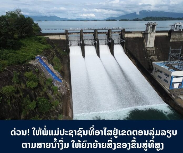 ປະຊາຊົນທີ່ອາໄສຢູ່ເຂດຕອນລຸ່ມລຽບສາຍນ້ຳງື່ມ ໃຫ້ຍົກຍ້າຍສິ່ງຂອງໄວ້ບ່ອນທີ່ສູງ