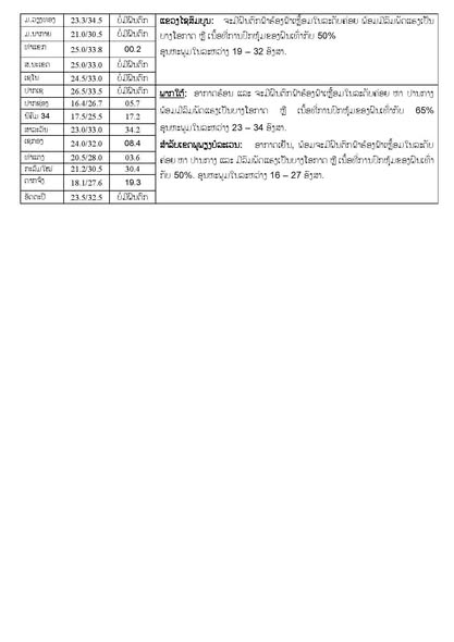 ດັ່ງນັັ້ນ, ຈຶ່ງແຈ້ງເຕືອນເຖິງປະຊາຊົນບັນດາເຜົົ່າ, ອົງການປົກຄອງທ້ອງຖິີ່ນ ແລະ ອົງການຈັດຕັັ້ງທຸກພາກສ່ວນໃນແຕ່ລະພາກ ລວມທັງນະຄອນຫລວງວຽງຈັນ ຈົົ່ງມີສະຕິລະມັດລະວັງ ແລະ ກຽມພ້ອມຮັບມືຕໍ່ສະພາບຝົນຕົກໜັກຕິດຕໍ່ກັນຫລາຍວັນ ທີີ່ອາດຈະເຮັດໃຫ້ເກີດມີດິນເຈືີ່ອນ ນໍ້າປ່າໄຫລຊຸແຮງ, ນໍ້າຖ້ວມຍືີ່ງ ແລະ ນໍ້າຖ້ວມອັ່ງໃນຕົວເມືອງ. ຂໍໃຫ້ຕິດຕາມຂ່າວພະຍາກອນອາກາດ