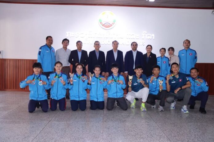 ໃນວັນທີ 3 ຕຸລາ ຜ່ານມາ, ທ່ານ ທອງສະລິດ ມັງໜໍ່ເມກ ລັດຖະມົນຕີກະຊວງສຶກສາທິການ ແລະ ກິລາ (ສສກ) ໄດ້ຕ້ອນຮັບຄະນະນຳ, ຄູຝຶກ ແລະ ນັກກິລາກະຕໍ້ທີມຊາດລາວ ນຳໂດຍ ທ່ານ ສັນຕິສຸກ ສິມມາລາວົງ ຮອງລັດຖະມົນຕີກະຊວງເຕັກໂນໂລຊີ ແລະ ການສື່ສານ ທັງເປັນປະທານສະຫະພັນກິລາກະຕໍ້ ແລະ ຊິນລອນແຫ່ງຊາດລາວ, ມີທ່ານ ສີຈັນ ຈິດຕະປັນຍາ ຫົວໜ້າກົມກິລາລະດັບສູງ ກະຊວງສຶກສາທິການ ແລະ ກິລາ ພາຍຫຼັງສໍາເລັດການເຂົ້າຮ່ວມແຂ່ງຂັນ ລາຍການ “THE 2025 CHINA SEPAKTAKRAW OPEN OF LANCANG-MEKONG COOPERATION” ທີ່ເມືອງໜານໜິງ ແຂວງກວາງຊີ ສປ ຈີນ ລະຫວ່າງວັນທີ 26-30 ກັນຍາ 2025 ຊຶ່ງສາມາດຍາດມາໄດ້ 2 ຫຼຽນຄຳ, 1 ຫຼຽນເງິນ ແລະ 1 ຫຼຽນທອງ.
