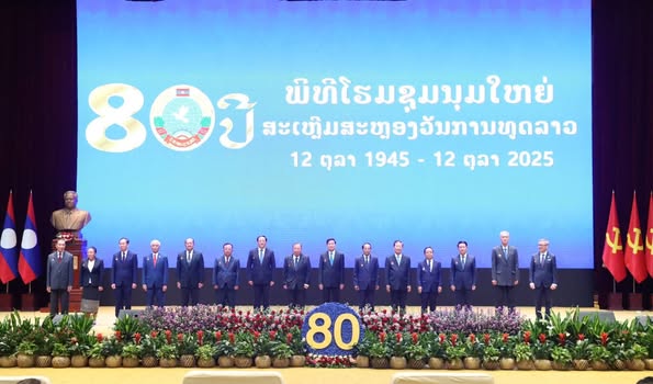 ກະຊວງການຕ່າງປະເທດ ຈັດພິທີສະເຫລີມສະຫລອງວັນການທູດລາວ ຄົບຮອບ 80 ປີ (12 ຕຸລາ 1945-12 ຕຸລາ 2025) ໃນວັນທີ 10 ຕຸລາ 2025 ໂດຍການເປັນກຽດເຂົ້າຮ່ວມຂອງ ທ່ານ ທອງລຸນ ສີສຸລິດ ເລຂາທິການໃຫຍ່ຄະນະບໍລິຫານງານສູນກາງພັກ, ປະທານປະເທດ ແຫ່ງ ສປປ ລາວ, ມີບັນດາກໍາມະການກົມການເມືອງສູນກາງພັກ, ຄະນະເລຂາທິການສູນກາງພັກ, ອະດີດການນໍາຂັ້ນສູງ, ບັນດາການນໍາພັກ-ລັດ, ພະນັກງານບັນດາສໍານັກງານຜູ້ຕາງໜ້າ ແຫ່ງ ສປປ ລາວ ປະຈໍາຢູ່ຕ່າງປະເທດ ເຂົ້າຮ່ວມ.