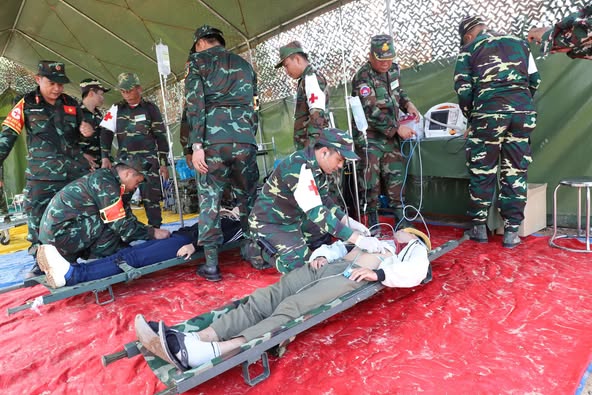 ຜ່ານການເຝິກຊ້ອມໃນໄລຍະຫຼາຍວັນທີ່ຜ່ານມາ ເຖິງແມ່ນວ່າວຽກງານວິຊາສະເພາະບາງດ້ານຈະຍັງບໍ່ທັນສອດຄ່ອງກໍຕາມ, ແຕ່ຍ້ອນການນຳພາ-ຊີ້ນຳຢ່າງໃກ້ຊິດຕິດແທດຂອງຂັ້ນເທິງ, ພະນັກງານວິຊາການແພດໝໍ-ນັກເຝິກຊ້ອມ ແລະ ນັກສະແດງ ໄດ້ພ້ອມກັນຍົກສູງຄວາມຮັບຜິດຊອບໜ້າທີ່ການເມືອງຂອງຕົນ, ສຸມສະຕິປັນຍາ, ກຳລັງແຮງກາຍ, ແຮງໃຈ ເຂົ້າໃນການຈັດຕັ້ງປະຕິບັດການເຝິກຊ້ອມກອບກູ້ໄພພິບັດຮ່ວມກັບກອງທັບເພື່ອນ ຕາມແຜນການເຄື່ອນໄຫວເຝິກຊ້ອມຕາມແຕ່ລະບາດກ້າວດ້ວຍຄວາມເອົາໃຈໃສ່ ແລະ ເປັນຂະບວນການຟົດຟື້ນ.