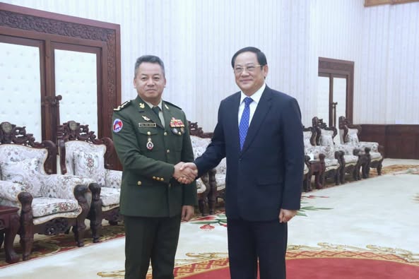 ທ່ານ ສອນໄຊ ສີພັນດອນ ນາຍົກລັດຖະມົນຕີແຫ່ງ ສປປ ລາວ ໄດ້ຕ້ອນຮັບທ່ານພົນເອກ ເຕຍໄສຫາ ຮອງນາຍົກລັດຖະມົນຕີ ລັດຖະມົນຕີກະຊວງປ້ອງກັນປະເທດແຫ່ງຣາຊະອານາຈັກກຳປູເຈຍ ພ້ອມຄະນະ, ເຂົ້າຢ້ຽມຂໍ່ານັບ, ເມື່ອວັນທີ 14 ຕຸລານີ້ ທີ່ຫ້ອງຮັບແຂກສຳນັກງານນາຍົກລັດຖະມົນຕີ, ໃນ ໂອກາດທີ່ຄະນະຜູ້ແທນດັ່ງກ່າວເດີນທາງມາຢ້ຽມຢາມ ແລະ ເຮັດວຽກຢູ່ ສປປ ລາວ ໃນລະຫວ່າງວັນທີ 13-16 ຕຸລານີ້.
