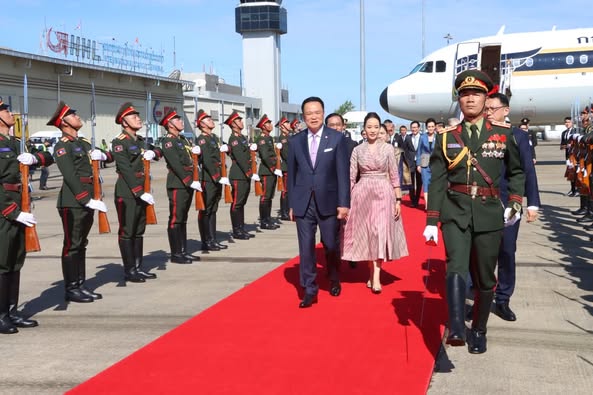 ໃນຕອນເຊົ້າຂອງວັນທີ 16 ຕຸລາ 2025, ທ່ານ ອະນຸທິນ ຊານວີຣະກຸນ ນາຍົກລັດຖະ ມົນຕີ ແຫ່ງ ຣາຊະອານາຈັກໄທ ພ້ອມດ້ວຍພັນລະຍາ ແລະ ຄະນະ ໄດ້ເດີນທາງເຖິງສະໜາມບິນສາກົນວັດໄຕ, ນະຄອນຫລວງວຽງຈັນ (ນວ) ເພື່ອດໍາເນີນການຢ້ຽມຢາມ ສປປ ລາວ ຢ່າງເປັນທາງການ ເຊິ່ງພິທີຕ້ອນຮັບທີ່ສະໜາມບິນ ໄດ້ຈັດຂຶ້ນຢ່າງອົບອຸ່ນ ແລະ ສົມກຽດ ໂດຍມີ ທ່ານ ເຫລັກໄຫລ ສີວິໄລ ລັດຖະມົນຕີກະຊວງໂຍທາທິການ ແລະ ຂົນສົ່ງ, ທັງເປັນລັດຖະມົນຕີກຽດຕິຍົດ ພ້ອມດ້ວຍຄະນະ ທັງຝ່າຍລາວ ແລະ ຝ່າຍໄທ ໃຫ້ການຕ້ອນຮັບ.