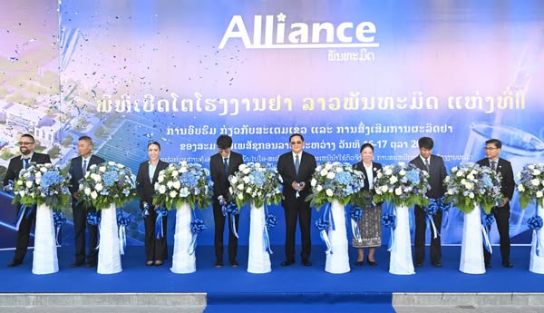 ພິທິເປີດ ໂຮງງານຜະລິດຢາ alliance ລາວພັນທະມິດ ແຫ່ງທີ 2 ໄດ້ຈັດຂຶ້ນໃນວັນທີ 17 ຕຸລາຜ່ານມາ ທີ່ ບ້ານສິມມະໂນ ເມືອງຫາດຊາຍຟອງ ນະຄອນຫຼວງວຽງຈັນ ໂດຍການໃຫ້ກຽດເຂົ້າຮ່ວມຂອງທ່ານ ສອນໄຊ ສີພັນດອນ ນາຍົກລັດຖະມົນຕີ, ມີທ່ານ ນາງ ອາພອນ ວິຊາເທບ ຮອງລັດຖະມົນຕີ ກະຊວງສາທາລະນະສຸກ, ມີແຂກຖືກເຊີນ ແລະ ພາກສ່ວນກ່ຽວຂ້ອງເຂົ້າຮ່ວມ.