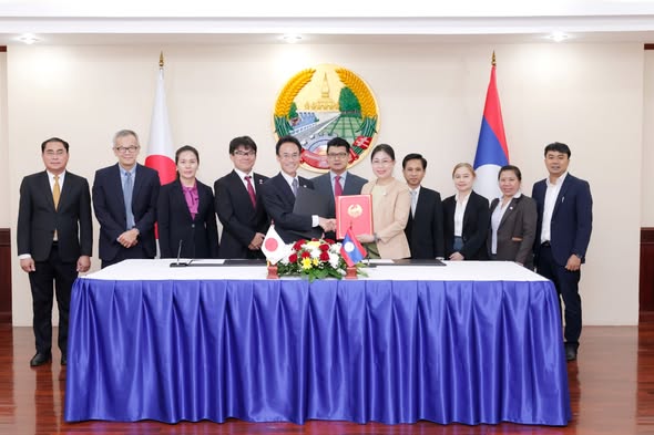 ພິທີລົງນາມເອກະສານແລກປ່ຽນ ສໍາລັບ ໂຄງການຊ່ວຍເຫລືອຈາກລັດຖະບານຍີ່ປຸ່ນ ໃນໂຄງການປັບປຸງຂໍ້ມູນຂ່າວສານທາງດ້ານພູມສາດ ມູນຄ່າ 649 ລ້ານເຢນ ຈັດຂຶ້ນໃນວັນທີ 22 ຕຸລາ 2025, ຕາງໜ້າລັດຖະບານລາວ ລົງນາມໂດຍ ທ່ານ ນາງ ຟອງສະໝຸດ ອັ່ນລາວັນ ຮອງລັດຖະມົນຕີກະຊວງການຕ່າງປະເທດ ແຫ່ງ ສປປ ລາວ ແລະ ຕາງໜ້າລັດຖະບານຍີ່ປຸ່ນໂດຍ ທ່ານ ໂຄອິຊຸມິ ຊຶໂຕມຸ ເອກອັກຄະຣາຊະທູດ ແຫ່ງ ຍີ່ປຸ່ນ ປະຈໍາລາວ, ມີພະນັກງານຈາກຂະແໜງການທີ່ກ່ຽວຂ້ອງສອງຝ່າຍ ຍີ່ປຸ່ນ ແລະ ລາວ ເຂົ້າຮ່ວມເປັນສັກຂີພິຍານ.
