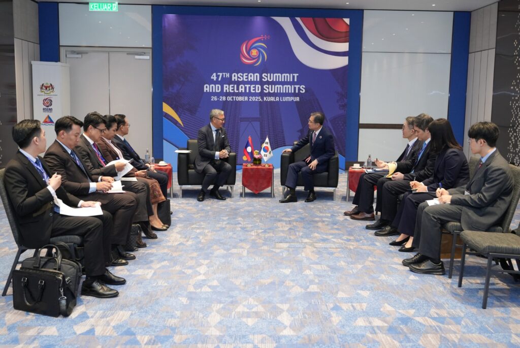 ທ່ານ ທອງສະຫວັນ ພົມວິຫານ ລັດຖະມົນຕີກະຊວງການຕ່າງປະເທດ ແຫ່ງ ສປປ ລາວ ໄດ້ພົບປະສອງຝ່າຍກັບ ທ່ານ ໂຈ ຮຸນ ລັດຖະມົນຕີກະຊວງການຕ່າງປະເທດ ແຫ່ງ ສາທາລະນະລັດ ເກົາຫລີ ໃນວັນທີ 27 ຕຸລາ 2025, ໃນໂອກາດຕິດຕາມ ທ່ານ ສອນໄຊ ສີພັນດອນ ນາຍົກລັດຖະມົນຕີ ແຫ່ງ ສປປ ລາວ ເດີນທາງເຂົ້າຮ່ວມກອງປະຊຸມສຸດຍອດອາຊຽນ ຄັ້ງທີ 47 ແລະ ບັນດາກອງປະຊຸມສຸດຍອດປິ່ນອ້ອມທີ່ກ່ຽວຂ້ອງ, ທີ່ກົວລາລໍາເປີ ປະເທດມາເລເຊຍ.