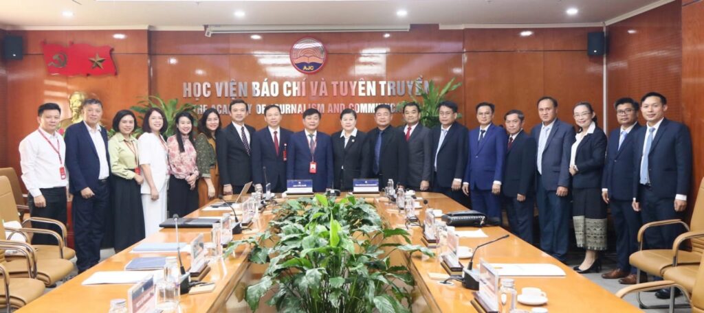 ຮ່າໂນຍ, 23 ຕຸລາ – ຄະນະຜູ້ແທນລາວ ນຳໂດຍ ສະຫາຍ ນາງ ວິລະວອນ ພັນທະວົງ, ຮອງຫົວໜ້າຄະນະໂຄສະນາອົບຮົມສູນກາງພັກ, ໄດ້ເຂົ້າພົບປະເຮັດວຽກກັບ ສະຖາບັນສື່ມວນຊົນ ແລະ ໂຄສະນາຫວຽດນາມ (Institute of Journalism and Communication) ທີ່ນະຄອນຫຼວງຮ່າໂນຍ, ເພື່ອປຶກສາຫາລື ແລະ ເພີ່ມທະວີການຮ່ວມມືໃນການບຳລຸງສ້າງບຸກຄະລາກອນສື່ມວນຊົນ.