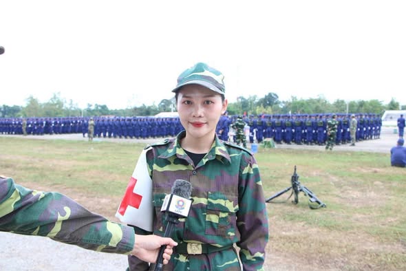 ສະຫາຍ ຮ້ອຍໂທ ນາງ ອຳໄພ ນະຄອນໄຊ ແພດທົ່ວໄປ ໂຮງໝໍສູນກາງ 103 ຮັບຜິດຊອບແພດສະໜາມ ປະຈຳວິທະຍາຄານນາຍທະຫານບົກກົມມະດຳ ໄດ້ໃຫ້ສຳພາດເມື່ອບໍ່ດົນມານີ້ວ່າ: ໃນນາມເປັນແພດສະໜາມ ມີຄວາມຮູ້ສຶກພາກພູມໃຈເປັນຢ່າງຍິ່ງ ທີ່ໄດ້ຖືກຄັດເລືອກເຂົ້າຮ່ວມຮັບໃຊ້ວຽກງານເດີນສວນສະໜາມ ຕ້ອນຮັບວັນຊາດທີ 2 ທັນວາ ຄົບຮອບ 50 ປີ, ພາຍຫລັງທີ່ອ້າຍນ້ອງກ້ອນສວນສະໜາມເຂົ້າສູນຝຶກ ພວກເຮົາໄດ້ກະກຽມຄວາມພ້ອມ ເປັນຕົ້ນ ປະເພດຢາ ແລະ ອຸປະກອນການປະຖົມພະຍາບານຂັ້ນຕົ້ນ ພ້ອມທັງກວດສຸຂະພາບອ້າຍນ້ອງກ່ອນເຂົ້າສູນຝຶກ ແລະ ເບິ່ງແຍງໃກ້ຊິດຕິດແທດອ້າຍນ້ອງ ໃນຍາມຝຶກຊ້ອມເດີນສວນສະໜາມ ແລະ ການກິນຢູ່ພັກເຊົ່າ ເປັນປະຈຳຕາມແຜນການທີ່ວາງໄວ້, ຖ້າຫາກມີກໍລະນີສຸກເສີນແມ່ນຈະໄດ້ປະຖົມປະຍາບານຂັ້ນຕົ້ນ ແລະ ນຳສົ່ງໂຮງໝໍ, ຂໍ້ສະດວກ ແມ່ນຄະນະພັກ-ຄະນະບັນຊາເສນາຮັກ ໃຫ້ຄວາມສຳຄັນຕໍ່ສຸຂະພາບ ສາມາດຕອບສະໜອງອຸປະກອນຕ່າງໆ ເພື່ອມີຄວາມພ້ອມຮັບປະກັນໃນຍາມສຸກເສີນ, ສ່ວນຂໍ້ຫຍຸ້ງຍາກແມ່ນສະພາບອາກາດຝົນຕົກ, ແດດຮ້ອນອົບເອົ້າ ເຮັດໃຫ້ພະນັກງານ-ນັກຮົບສວນສະໜາມຂອງພວກເຮົາ ບໍ່ສະບາຍຈໍານວນໜຶ່ງ, ແຕ່ເຖິງຢ່າງໃດກໍຕາມ ແພດສະໜາມພວກເຮົາແມ່ນສາມາດຮັບປະກັນໄດ້ 100% ແລະ ພ້ອມທັງໃຫ້ຄຳໜັ້ນສັນຍາວ່າ ຈະຮັບປະກັນດ້ານສຸຂະພາບພະນັກງານ-ນັກຮົບ ສຸດຄວາມສາມາດ ໃຫ້ສົມກັບສາຍານາມແພດປະຕິວັດ.