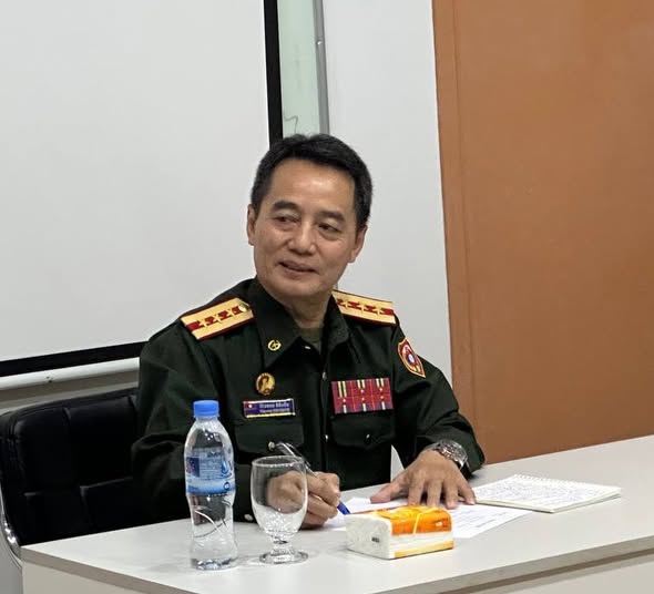 ທ່ານ ພັນເອກ ວິໄລສອນ ສີສົມບັດ ຫົວໜ້າຫ້ອງການທີ່ປຶກສາປ້ອງກັນຊາດ (ປກຊ)ລາວ ປະຈໍາຣາຊະອານາຈັກກໍາປູເຈຍ ພ້ອມດ້ວຍຄະນະ ລົງພົບປະໂອ້ລົມຊຸກຍູ້ໃຫ້ກໍາລັງໃຈອ້າຍນ້ອງນັກສຶກສາກອງທັບປະຊາຊົນລາວ ທີ່ກໍາລັງສຶກສາ ພາສາສາດ ແລະ ວັນນະຄະດີຂະແມ ລະບົບປະລິນຍາຕີ ຢູ່ມະຫາວິທະຍາໄລປ້ອງກັນຊາດກອງທັບ ແຫ່ງຣາຊະອານາຈັກກໍາປູເຈຍ ເມື່ອບໍ່ດົນມານີ້, ໃນໂອກາດທີ່ຈະເປີດສົກຮຽນໃໝ່ ປະຈໍາປີ 2025-2026 ໂດຍອ້າຍນັກສຶກສາກອງທັບປະຊາຊົນລາວ ທີ່ກໍາລັງສຶກສາ ຢູ່ຣາຊະອານາຈັກກໍາປູເຈຍ ເຂົ້າຮ່ວມຢ່າງພ້ອມພຽງ.