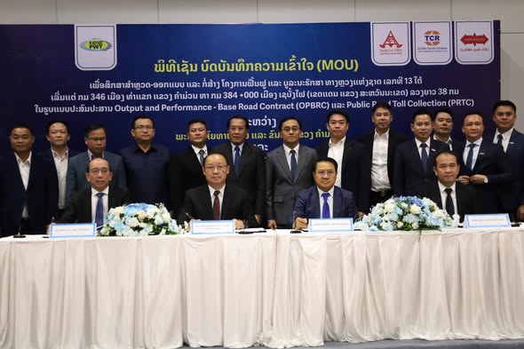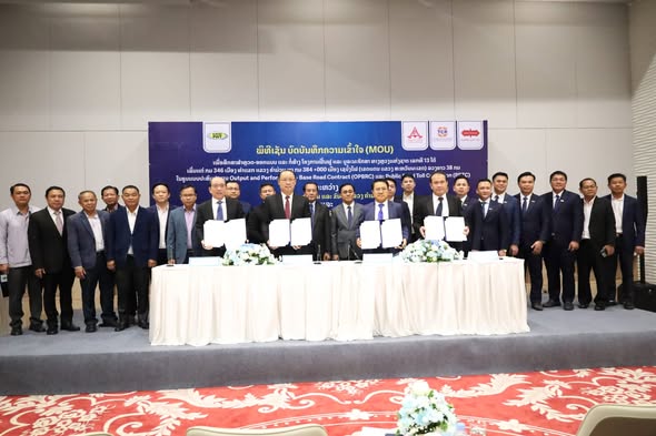 ແຫລ່ງຂ່າວຈາກ ແຂວງຄຳມ່ວນ ໃຫ້ຮູ້ວ່າ: ພິທີເຊັນບົດບັນທຶກຄວາມເຂົ້າໃຈ (MOU) ເພື່ອສໍາຫລວດ-ອອກແບບ ແລະ ກໍ່ສ້າງ ໂຄງການຟື້ນຟູ ແລະ ບູລະນະທາງຫລວງແຫ່ງຊາດ ເລກທີ 13 ໃຕ້ ເລີ່ມແຕ່ ກມ 346 ຫາ ກມ 384 + 000 ເມືອງທ່າແຂກ ແຂວງຄໍາມ່ວນ ຫາ ເມືອງເຊບັ້ງໄຟ ເຂດແດນແຂວງສະຫວັນນະເຂດ, ມີຄວາມຍາວ 38 ກິໂລແມັດ ໃນຮູບແບບປະສົມປະສານ ຈັດຂຶ້ນໃນວັນທີ 4 ພະຈິກ 2025 ທີ່ແຂວງຄໍາມ່ວນ ຕາງໜ້າລົງນາມໂດຍທ່ານ ສຸທັດ ສຸມາລີ ຫົວໜ້າພະແນກໂຍທາທິການ ແລະ ຂົນສົ່ງ ແຂວງຄໍາມ່ວນ ບໍລິສັດ ໄຊເສດຖາກໍ່ສ້າງຈໍາກັດຜູ້ດຽວ, ກຸ່ມບໍລິສັດຕັງຈະເລີນຈໍາກັດຜູ້ດຽວ ແລະ ບໍລິສັດຄູນຄໍາ ອຸດສາຫະກໍາຈໍາກັດ, ມີທ່ານ ວັນໄຊ ພອງສະຫວັນ ເຈົ້າແຂວງໆຄໍາມ່ວນ, ທ່ານ ເຫລັກໄຫລ ສີວິໄລ ລັດຖະມົນຕີກະຊວງໂຍທາທິການ ແລະ ຂົນສົ່ງ ພ້ອມດ້ວຍພາກສ່ວນທີ່ກ່ຽວຂ້ອງເຂົ້າຮ່ວມ.