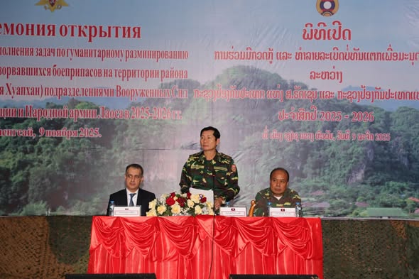 ໃນນີ້ ກະຊວງປ້ອງກັນປະເທດ ສປປ ລາວ ໄດ້ເປັນເຈົ້າການຮ່ວມມືກັບ ກະຊວງປ້ອງກັນປະເທດ ແຫ່ງ ສ.ຣັດເຊຍ ແກ້ໄຂບັນຫາລະເບີດບໍ່ທັນແຕກ ໄລຍະ 7 ປີ ທີ່ຜ່ານມາຄື: ຢູ່ເມືອງຄຳເກີດ, ແຂວງບໍລິຄໍາໄຊ ໃນສົກ 2018-2019, ຢູ່ເມືອງແປກ ແຂວງຊຽງຂວາງ ສົກ 2019-2020 ແລະ 2020-2021 ຢູ່ເມືອງນາກາຍ ແຂວງຄໍາມ່ວນ, ສົກ 2021-2022 ແລະ ສົກປີ 2022-2023, ຢູ່ເມືອງກາສີ ແຂວງວຽງຈັນ, ສົກປີ 2023-2024 ແລະ ສົກປີ 2024-2025 ຢູ່ເມືອງວຽງໄຊ ແຂວງຫົວພັນ ເຊິ່ງ ສາມາດປົດປ່ອຍພື້ນທີ່ດິນ ອອກຈາກບັນຫາລະເບີດບໍ່ທັນແຕກໄດ້ 212,74 ເຮັກຕາ, ທໍາລາຍລະເບີດອອກຈາກຜືນແຜ່ນດິນລາວໄດ້ 3.634 ໜ່ວຍ. ພ້ອມກັນນັ້ນ, ສູນກວດກູ້ມິນສາກົນ ແຫ່ງ ສ.ຣັດ ເຊຍ ໄດ້ສົ່ງຄູມາເຝິກອົບຮົມດ້ານການແກ້ໄຂລະເບີດບໍ່ທັນແຕກ ເພື່ອມະນຸດສະທຳ ໃຫ້ພະນັກງານ, ນັກຮົບ ກອງທັບປະຊາຊົນລາວ ໄດ້ 164 ສະຫາຍ. ຜ່ານການປະຕິບັດແຜນການຮ່ວມມືລະຫວ່າງ ສອງກະຊວງປ້ອງກັນປະເທດ ລາວ-ຣັດເຊຍ ເຫັນວ່າ ປະສົບຜົນສໍາເລັດດີ ແລະ ໄດ້ນໍາເອົາຜົນປະໂຫຍດ ມາໃຫ້ປະເທດຊາດ ແລະ ປະຊາຊົນລາວ ຢ່າງໜ້າພາກພູມໃຈ ສະນັ້ນ, ໃນສົກ 2025-2026 ນີ້ ສອງກໍາລັງພວກເຮົາຈຶ່ງໄດ້ຮັບອະນຸມັດຈາກ ລັດຖະບານ ຂອງສອງປະເທດ ລາວ ແລະ ຣັດເຊຍ ມາສືບຕໍ່ກວດກູ້ ແລະ ທຳລາຍລະເບີດບໍ່ທັນແຕກຕົກຄ້າງ ຢູ່ເມືອງວຽງໄຊ ແລະ ເມືອງຊໍາເໜືອ ແຂວງຫົວພັນ ເພື່ອປະກອບສ່ວນແກ້ໄຂບັນຫາລະເບີດບໍ່ທັນແຕກທີ່ຕົກຄ້າງ, ປົດປ່ອຍເນື້ອທີ່ທຳການຜະລິດໃຫ້ປະຊາຊົນບັນດາເຜົ່າ, ເພື່ອເຮັດໃຫ້ການດຳລົງຊີວິດຂອງປະຊາຊົນ ປາສະຈາກຄວາມອັນຕະລາຍຈາກລູກລະເບີດບໍ່ທັນແຕກຕົກຄ້າງ, ຄຽງຄູ່ກັນນັ້ນ ຍັງເປັນການປະກອບສ່ວນສໍາຄັນ ເຂົ້າໃນການຈັດຕັ້ງປະຕິບັດ ເປົ້າໝາຍສະຫັດສະຫວັດ ແຫ່ງການພັດທະນາຂອງລັດຖະບານ ແນ່ໃສ່ລົບລ້າງຄວາມທຸກຍາກຂອງປະຊາຊົນບັນດາເຜົ່າ ໃຫ້ໄດ້ໃນປີ 2030.
