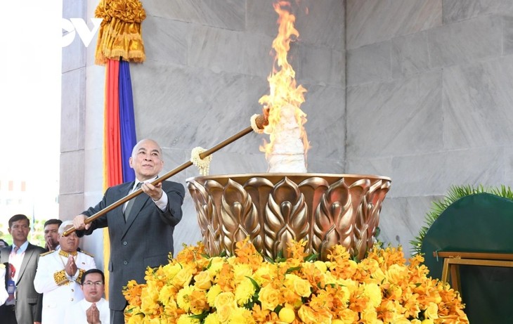 ວິທະຍຸກະຈາຍສຽງຫວຽດນາມ, ກຳປູເຈຍ ໄດ້ຈັດພິທີສະເຫລີມສະຫລອງວັນຊາດ ຄົບຮອບ 72 ປີ ແລະ ວັນສ້າງຕັ້ງ ກອງທັບພະບໍລົມວົງ ສານຸວົງ ກຳປູເຈຍ (9/11/1953-9/11/2025). ພິທີໄດ້ດຳເນີນໄປພາຍໃຕ້ການເປັນປະທານ ຂອງກະສັດນໍໂຣດົມສີຫາໂມນີ (Norodom Sihamoni). ພາຍຫລັງພິທີເຄົາລົບທຸງຊາດ, ກະສັດ Norodom Sihamoni ໄດ້ວາງ ພວງມາລາອາໄລຫາ ບັນດານັກວິລະຊົນ, ນັກຮົບເສຍສະຫຼະຊີວິດເພື່ອຊາດ, ໃຕ້ທວນໄຟໃນອະນຸສາວະລີເອກະລາດ ຢູ່ໃຈກາງນະຄອນຫຼວງພະນົມເປັນ. ກະສັດ Norodom Sihamoni ຍັງໄດ້ໄປກວດກ້ອນກຳລັງ, ຊົມເຊີຍບັນດາກຳລັງຂຶ້ນກັບ ກອງທັບພະບໍລົມວົງສານຸວົງກຳປູເຈຍ, ຍິນດີຕ້ອນຮັບບັນດາຜູ້ແທນ ແລະ ປະຊາຊົນກຳປູເຈຍ ທຸກຊັ້ນວັນນະ ແລະ ເພື່ອນ ມິດສາກົນ ທີ່ໄດ້ເຂົ້າຮ່ວມພິທີ ຢ່າງສົມກຽດນີ້. ພິທີສະເຫລີມສະຫລອງວັນຊາດ ກຳປູເຈຍ ຄົບຮອບ 72 ປີ ໄດ້ດຳເນີນໄປ ໃນສະພາບການ ປະເທດ ກຳປູເຈຍ, ພາຍໃຕ້ການເປັນເຈົ້າຂອງກະສັດ Norodom Sihamoni ການຊີ້ນຳນຳພາພັກປະຊາຊົນ ກຳປູເຈຍ ແລະ ລັດຖະບານພະບໍລົມວົງສານຸວົງ ອາຍຸການທີ 7 ຂອງທ່ານ ຮຸນມາເນັດ (Hun Manet) ນາຍົກລັດຖະມົນຕີ ໄດ້ຜ່ານຜ່າຄວາມຫຍຸ້ງຍາກສິ່ງທ້າທາຍນາໆ ປະການໃນທຸກດ້ານ ເພື່ອຮັກສາສະຖຽນລະພາບ ແລະ ຮັກສາການເຕີບໂຕເສດຖະກິດ.