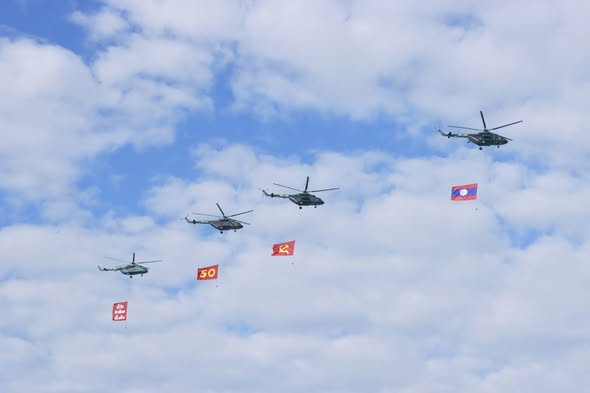ພິທີຊ້ອມໃຫຍ່ທຸກຂະບວນເດີນສວນສະໜາມ ເພື່ອສະເຫລີມສະຫລອງ ວັນສະຖາປະນາ ສປປ ລາວ ຄົບຮອບ 50 ປີ ໄດ້ຈັດຂຶ້ນວັນທີ 14 ພະຈິກ 2025 ນີ້ ທີ່ສະໜາມຫລວງ ນະຄອນຫລວງວຽງຈັນ ໂດຍມີສະຫາຍ ບຸນທອງ ຈິດມະນີ ຮອງປະທານປະເທດ, ຜູ້ປະຈໍາການຄະນະເລຂາທິການສູນກາງພັກ, ສະຫາຍ ພົນເອກ ຈັນສະໝອນ ຈັນຍາລາດ ຮອງນາຍົກລັດຖະມົນຕີ, ຜູ້ຊີ້ນໍາວຽກງານ ປກຊ-ປກສ ຂັ້ນສູນກາງ, ມີບັນດາການນຳພັກ, ລັດ ແລະ ພາກສ່ວນກ່ຽວຂ້ອງ ເຂົ້າຮ່ວມ.