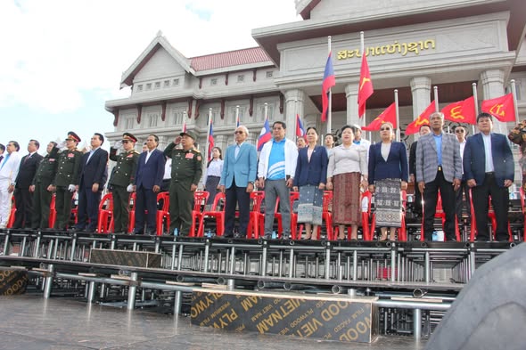 ພິທີຊ້ອມໃຫຍ່ທຸກຂະບວນເດີນສວນສະໜາມ ເພື່ອສະເຫລີມສະຫລອງ ວັນສະຖາປະນາ ສປປ ລາວ ຄົບຮອບ 50 ປີ ໄດ້ຈັດຂຶ້ນວັນທີ 14 ພະຈິກ 2025 ນີ້ ທີ່ສະໜາມຫລວງ ນະຄອນຫລວງວຽງຈັນ ໂດຍມີສະຫາຍ ບຸນທອງ ຈິດມະນີ ຮອງປະທານປະເທດ, ຜູ້ປະຈໍາການຄະນະເລຂາທິການສູນກາງພັກ, ສະຫາຍ ພົນເອກ ຈັນສະໝອນ ຈັນຍາລາດ ຮອງນາຍົກລັດຖະມົນຕີ, ຜູ້ຊີ້ນໍາວຽກງານ ປກຊ-ປກສ ຂັ້ນສູນກາງ, ມີບັນດາການນຳພັກ, ລັດ ແລະ ພາກສ່ວນກ່ຽວຂ້ອງ ເຂົ້າຮ່ວມ.