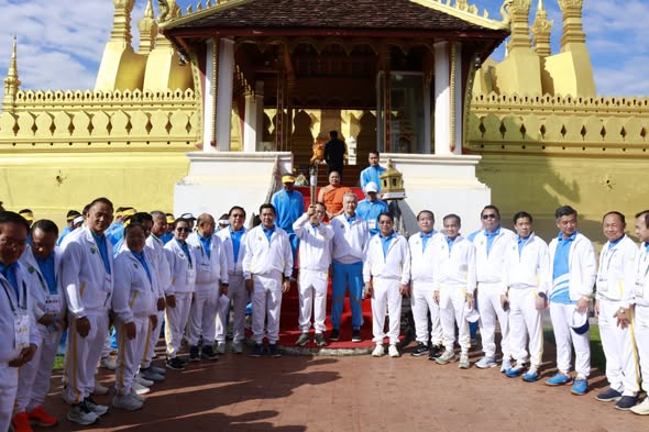 ພິທີຂໍໄຟສັກສິດ ງານມະຫະກຳກິລາແຫ່ງຊາດ ຄັ້ງທີ XII ຈັດຂຶ້ນໃນວັນທີ 14 ພະຈິກ 2025 ທີ່ພະທາດຫລວງວຽງຈັນ ໂດຍມີ ທ່ານ ທອງສະລິດ ມັງໜໍ່ເມກ ລັດຖະມົນຕີກະຊວງສຶກສາທິການ ແລະ ກິລາ, ທ່ານ ອານຸພາບ ຕຸນາລົມ ປະທານສະພາປະຊາຊົນ ນະຄອນຫລວງວຽງຈັນ, ທ່ານ ອາດສະພັງທອງ ສີພັນດອນ ເຈົ້າຄອງນະຄອນຫລວງວຽງຈັນ, ປະທານຈັດງານມະຫະກຳກິລາແຫ່ງຊາດ ຄັ້ງທີ XII, ມີບັນດາການນໍາພັກ-ລັດ ຂັ້ນສູນກາງ, ທ້ອງຖິ່ນ ພໍ່ແມ່ປະຊາຊົນ, ພະນັກງານ, ທະຫານ-ຕຳຫລວດ ແລະ ມ່ວນຊົນເຂົ້າຮ່ວມ.