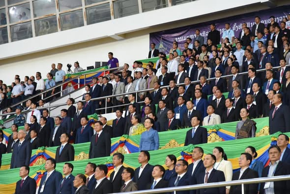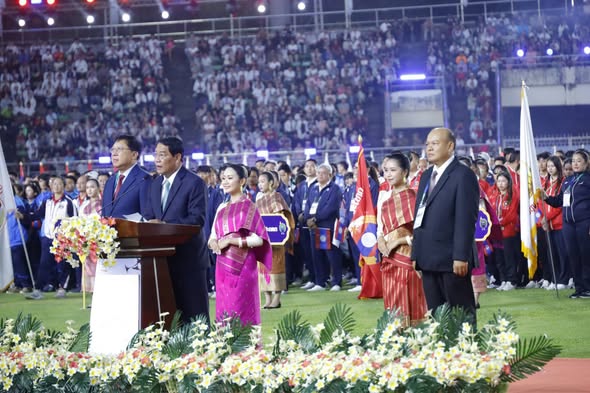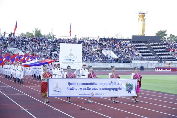 ງານມະຫາກໍາກິລາແຫ່ງຊາດລາວ ຄັ້ງທີ XII ທີ່ ນະ ຄອນຫຼວງວຽງຈັນເປັນເຈົ້າພາບໄດ້ເປີດຂຶ້ນຢ່າງເປັນທາງ ການໃນວັນທີ 15 ພະຈິກ 2025 ນີ້, ເປັນປະທານຈັດງານ ໂດຍທ່ານ ປອ. ອາດສະພັງທອງ ສີພັນດອນ ເຈົ້າຄອງນະຄອນຫຼວງວຽຈັນ, ໃຫ້ກຽດເຂົ້າຮ່ວມໂດຍ ທ່ານ ທອງລຸນ ສີສຸລິດ ປະທານປະເທດແຫ່ງ ສາທາລະນະລັດ ປະຊາ ທິປະໄຕ ປະຊາຊົນລາວ ພ້ອມດ້ວຍພັນລະຍາ, ມີບັນດາທ່ານການນຳ ພັກ-ລັດ, ອະດີດ ການນຳພັກ- ລັດຂັ້ນສູນກາງ ແລະ ທ້ອງຖິ່ນ, ມີບັນດາທ່ານແຂກທີ່ມີກຽດ ທັງພາຍໃນ ແລະ ຕ່າງປະເທດ, ມີຄະນະນຳນັກກິລາ, ຄູຝຶກ, ກຳມະການຕັດສິນ, ນັກກິລາ, ພໍ່ແມ່ ປະຊາຊົນລາວບັນດາເຜົ່າເຂົ້າຮ່ວມ.