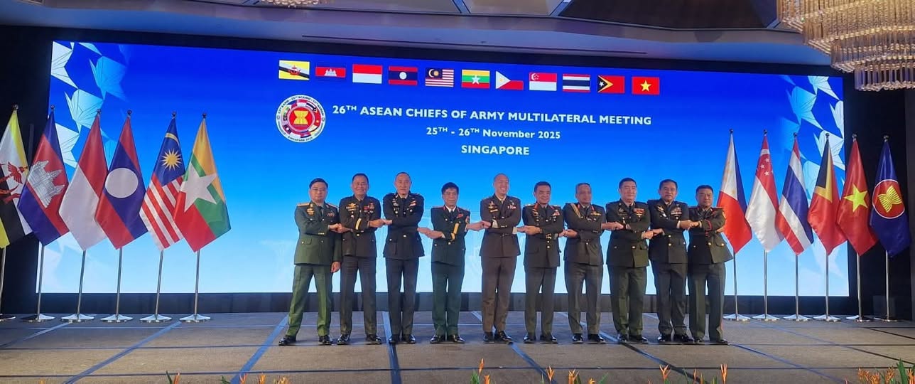 ໃນວັນທີ 26 ພະຈິກ 2025 ນີ້, ຄະນະຜູ້ແທນກອງທັບປະຊາຊົນລາວ ນໍາໂດຍທ່ານ ພົນຕີ ກົງທອງ ສຸຂະວົງ ຮອງຫົວໜ້າກົມໃຫຍ່ເສນາທິການກອງທັບປະຊາຊົນລາວ ໄດ້ເຂົ້າຮ່ວມກອງປະຊຸມຜູ້ບັນຊາການທະຫານບົກອາຊຽນ (ACAMM) ຄັ້ງທີ 26 ທີ່ປະເທດສິງກະໂປ,ໂດຍການເປັນປະທານຂອງ ທ່ານ ພົນຕີ ໄກ ເດສ່ຽນ ຜູ້ບັນຊາການທະ ຫານບົກແຫ່ງກອງທັບສິງກະໂປ ແລະ ມີຜູ້ບັນຊາການທະ ຫານບົກຈາກກອງທັບ ບັນດາປະເທດສະມາຊິກອາຊຽນ ເຂົ້າຮ່ວມ.