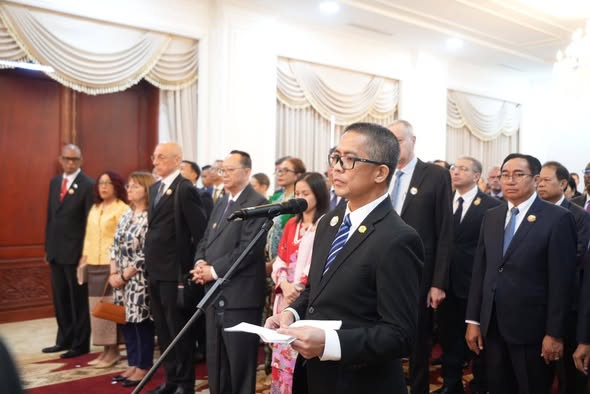 ໃນວັນທີ 30 ພະຈິກ 2025 ນີ້, ບັນດາການນຳຂັ້ນສູງ ພັກ, ລັດ ນຳໂດຍ ທ່ານ ທອງລຸນ ສີສຸລິດ ປະທານປະເທດ, ທ່ານ ສອນໄຊ ສີພັນດອນ ນາຍົກລັດຖະມົນຕີ, ທ່ານ ໄຊສົມພອນ ພົມວິຫານ ປະທານສະພາແຫ່ງຊາດ ພ້ອມດ້ວຍພັນລະຍາ ໄດ້ຕ້ອນຮັບການເຂົ້າອວຍພອນຂອງບັນດາທູຕານຸທູດ ແລະ ຜູ້ຕາງໜ້າອົງການຈັດຕັ້ງສາກົນ ປະຈຳ ສປປ ລາວ ເນື່ອງໃນໂອກາດ ວັນສະຖາປະນາ ສປປ ລາວ ຄົບຮອບ 50 ປີ ແລະ ປີໃໝ່ສາກົນ 2026.