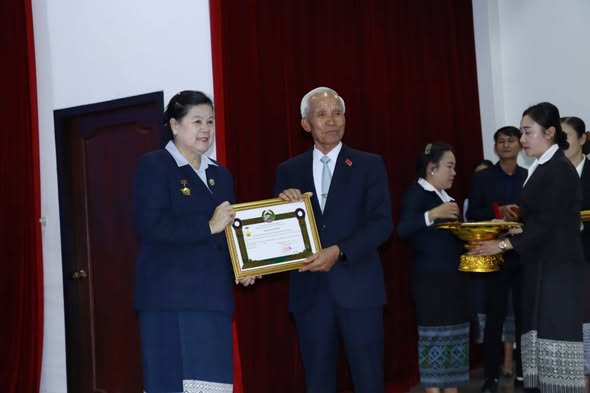 ໃນພິທີ, ສະຫາຍ ລາວປາວຊົ່ງ ນະວົງໄຊ ກໍາມະການສູນກາງພັກ ຮອງຫົວໜ້າ ຄອສພ ໄດ້ຜ່ານລັດຖະດໍາລັດປະທານປະເທດ ສະບັບເລກທີ 289/ປປທ, ລົງວັນທີ 20 ພະຈິກ 2025 ແລະ ຜ່ານໃບມອບສິດຂອງນາຍົກລັດຖະມົນຕີສະບັບເລກທີ 246/ນຍ, ລົງວັນທີ 20 ພະຈິກ 2025, ຊຶ່ງການມອບຫລຽນກາລະນຶກໃນຄັ້ງນີ້, ມີທັງພະນັກງານບໍານານ ແລະ ປະຈຳການ 560 ກວ່າສະຫາຍ, ຍິງ 216 ສະຫາຍ. ການມອບຫລຽນກາລະນຶກໃນຄັ້ງນີ້, ກໍເພື່ອສະແດງຄວາມຮູ້ບຸນຄຸນ, ຄຸນງາມຄວາມດີໃນພາລະກິດປົກປັກຮັກສາ ແລະ ສ້າງສາພັດທະນາປະເທດຊາດ ຕະຫລອດໄລຍະຜ່ານມາ.