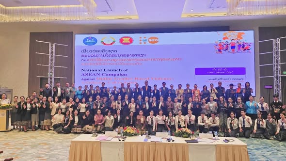 ກອງປະຊຸມເຜີຍແຜ່ລະດັບຊາດ ຂະບວນການໂຄສະນາຂອງອາຊຽນ ເພື່ອຕ້ານການໃຊ້ຄວາມຮຸ່ນແຮງທາງເພດ ຜ່ານທາງອອນລາຍ ພາຍໃຕ້ຫົວຂໍ້ “ຮ່ວມແຮງຮ່ວມໃຈກັນເພື່ອຢຸດຄວາມຮຸນແຮງຕໍ່ແມ່ຍິງ ແລະ ເດັກຍິງທຸກຄົນຜ່ານທາງດິຈິຕອນ” ຈັດຂຶ້ນໃນວັນທີ 8 ທັນວາ 2025 ຢູ່ນະຄອນ ຫລວງວຽງຈັນ ໂດຍການເປັນປະທານຮ່ວມຂອງ ທ່ານ ນາງ ພັນຈິນດາ ເລັ່ງສະຫວັດ ຮອງປະທານ ຄະນະບໍລິຫານງານສູນກາງສະຫະພັນແມ່ຍິງລາວ (ສສຍລ), ຮອງປະທານຄະນະກໍາມາທິການແຫ່ງຊາດເພື່ອຄວາມກ້າວໜ້າຂອງແມ່ຍິງ, ແມ່ ແລະ ເດັກ(ຄຊກມດ), ທ່ານ ແກ້ວວິສຸກ ໂສລະພົມ ຮອງລັດຖະມົນຕີກະຊວງເຕັກໂນໂລຊີ ແລະ ການສື່ສານ, ທ່ານ ບັກຕີຍໍ ກາດິຣບ ຜູ້ຕາງໜ້າອົງການສະຫະປະຊາຊາດ ກອງທຶນສໍາລັບປະຊາກອນ(UNFPA) ປະຈໍາລາວ, ມີບັນດາຜູ້ຕາງໜ້າຈາກກະຊວງ, ອົງ ການ, ຄູ່ຮ່ວມພັດທະນາ, ອົງການຈັດຕັ້ງສາກົນ ແລະ ພາກສ່ວນກ່ຽວຂ້ອງເຂົ້າຮ່ວມ ທັງແບບເຊິ່ງໜ້າ ແລະ ອອນລາຍ.