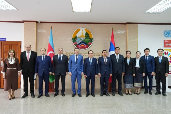 ກອງປະຊຸມປຶກສາຫາລືດ້ານການເມືອງ ຄັ້ງປະຖົມມະລຶກ ລະຫວ່າງ ສອງກະຊວງການຕ່າງປະເທດ ລາວ-ອາແຊັກໄບຊານ ຈັດຂຶ້ນ ໃນວັນທີ 8 ທັນວາ 2025 ຢູ່ນະຄອນຫລວງວຽງຈັນ ໂດຍການເປັນປະທານຮ່ວມຂອງ ທ່ານ ໄມທອງ ທໍາມະວົງສາ ຮອງລັດຖະມົນຕີກະຊວງການຕ່າງປະ ເທດ ແຫ່ງ ສປປ ລາວ ແລະ ທ່ານ ເອລນູຣ ມາມາດົບ ຮອງລັດຖະມົນຕີກະຊວງການຕ່າງປະເທດ ແຫ່ງ ສ ອາແຊັກໄບຊານ, ພ້ອມດ້ວຍພາກສ່ວນກ່ຽວຂ້ອງທັງສອງຝ່າຍ ເຂົ້າຮ່ວມ.