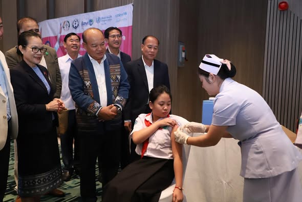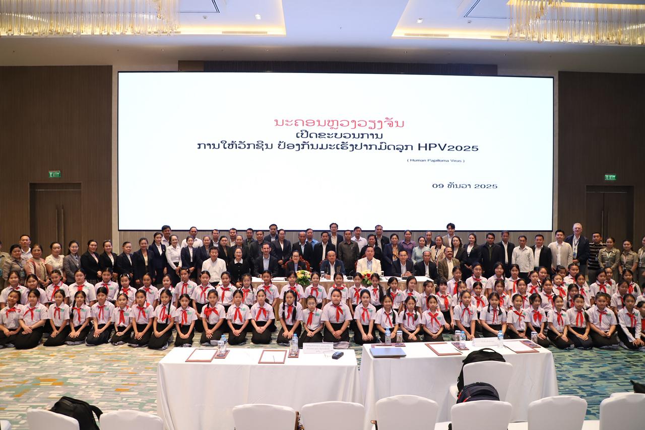 ໃນວັນທີ 9 ທັນວາ 2025 ນີ້, ທີ່ໂຮງແຮມໂຮລີເດ ໄດ້ເປີດຂະບວນການໃຫ້ວັກຊີນກັນມະເຮັງປາກມົດລູກ HPV ໃຫ້ແກ່ເດັກຍິງອາຍຸ 10 ປີ ຂຶ້ນຢ່າງເປັນທາງການ ໂດຍການເປັນປະທານຂອງ ທ່ານ ພູວົງ ວົງຄໍາຊາວ ຮອງເຈົ້າຄອງນະຄອນຫຼວງວຽງຈັນ ປະທານຄະນະກໍາມາທິການເພື່ອສຸຂະພາບແມ່ ແລະ ເດັກ ນະຄອນຫຼວງວຽງຈັນ, ມີຫົວໜ້າ ແລະ ຮອງຫົວໜ້າຫ້ອງການກະຊວງສາທາລະນະສຸກ, ຫົວໜ້າກົມອ້ອມຂ້າງກະຊວງ ແລະ ກະຊວງທີ່ກ່ຽວຂ້ອງ, ຄະນະສູນແມ່ ແລະ ເດັກ, ແພດ-ໝໍ, ຄູ-ອາຈານ ແລະ ນັກຮຽນຍິງ, ພະແນກສາທານະຄອນຫຼວງ, ຫ້ອງການສາທາເມືອງ 9 ຕົວເມືອງເຂົ້າຮ່ວມ.