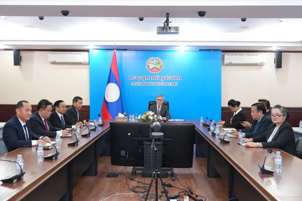 ໃນຕອນບ່າຍວັນທີ 12 ທັນວາ 2025 ນີ້, ສະຫາຍ ທອງສະຫວັນ ພົມວິຫານ ກໍາມະການສູນກາງພັກ, ລັດຖະມົນຕີກະຊວງການຕ່າງປະເທດ ແຫ່ງ ສປປ ລາວ ໄດ້ພົບປະສອງຝ່າຍຜ່ານລະບົບທາງໄກກັບ ສະຫາຍ ເລ ຮວາຍ ຈຸ່ງ ເລຂາທິການສູນກາງພັກ, ລັດຖະມົນຕີກະຊວງການຕ່າງປະເທດ ສສ ຫວຽດນາມ.