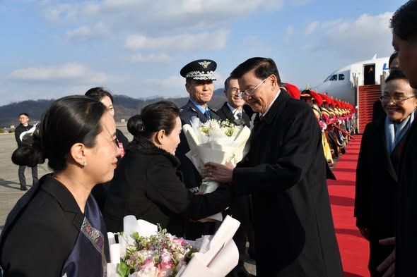 ໃນຕອນບ່າຍຂອງວັນທີ 14 ທັນວາ 2025, ພະນະທ່ານ ທອງລຸນ ສີສຸລິດ, ປະທານປະເທດ ແຫ່ງ ສປປ ລາວ ພ້ອມດ້ວຍພັນລະຍາ ແລະ ຄະນະຜູ້ແທນຂອງ ສປປ ລາວ ໄດ້ເດີນທາງເຖິງ ສະໜາມບິນ ເຊອຸນແອເບດສ໌ (Seoul Air Base), ນະຄອນຫຼວງເຊອຸນ, ສາທາລະນະລັດ ເກົາຫຼີ ເພື່ອດຳເນີນການຢ້ຽມຢາມຢ່າງເປັນທາງການ ຢູ່ ສ. ເກົາຫຼີ ໃນລະຫວ່າງວັນທີ 14-15 ທັນວາ 2025. ພິທີຕ້ອນຮັບທີ່ສະໜາມບິນ ໄດ້ຈັດຂຶ້ນຢ່າງອົບອຸ່ນ ແລະ ສົມກຽດ, ເຊິ່ງອອກຕ້ອນຮັບທີ່ສະໜາມບິນ ນຳໂດຍ ທ່ານ ໂຊ ຮະຍອງ-ຊານ (Choe Hyoung-chan), ຮອງລັດຖະມົນຕີກະຊວງການຕ່າງປະເທດ ແຫ່ງ ສ. ເກົາຫຼີ ແລະ ທ່ານ ສົງການ ຫຼວງມຸນິທອນ, ເອກອັກຄະລັດຖະທູດ ແຫ່ງ ສປປ ລາວ ປະຈຳ ສ.ເກົາຫຼີພ້ອມດ້ວຍພະນັກງານທີ່ກ່ຽວຂ້ອງຂອງທັງສອງຝ່າຍ.