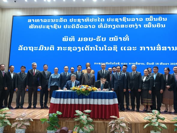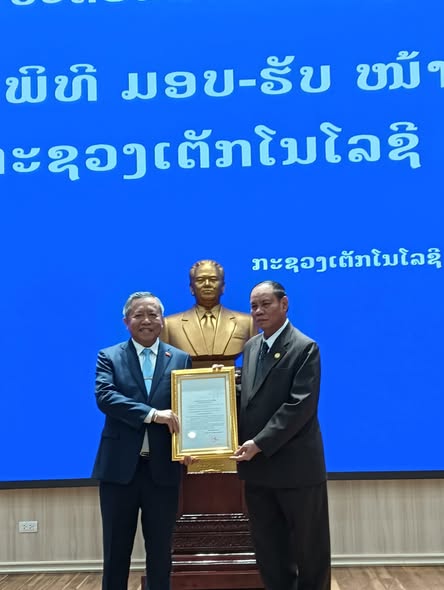 ພິທີມອບ-ຮັບໜ້າທີ່ລັດຖະມົນຕີ ກະຊວງເຕັກໂນໂລຊີ ແລະ ການສື່ສານ ຈັດຂຶ້ນວັນທີ 18 ທັນວາ 2025 ທີ່ສູນອິນເຕີເນັດແຫ່ງຊາດ ກະຊວງເຕັກໂນໂລຊີ ແລະ ການສື່ສານ (ກຕສ) ໃຫ້ກຽດເຂົ້າຮ່ວມໂດຍທ່ານ ພົນເອກ ວິໄລ ຫຼ້າຄໍາຟອງ ກຳມະການກົມການເມືອງສູນກາງພັກ ຮອງນາຍົກລັດຖະມົນຕີ ລັດຖະມົນຕີກະຊວງປ້ອງກັນຄວາມສະຫງົບ ມີຜູ້ຕາງໜ້າຈາກຄະນະຈັດຕັ້ງສູນກາງພັກ ບັນດາ ຄະນະພັກ ຄະນະນໍາ ກະຊວງ ກຕສ ແລະ ພະນັກງານຫຼັກແຫຼ່ງເຂົ້າຮ່ວມ.