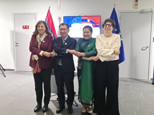 ສະຖານເອກອັກຄະລັດຖະທູດ ແຫ່ງ ສປປ ລາວ ປະຈຳ ສະຫະພາບເອີຣົບ ແລະ ຫ້ອງການພົວພັນການຕ່າງປະເທດເອີຣົບ ເປີດງານວາງສະແດງຮູບພາບ ເພື່ອສະເຫລີມສະຫລອງການສ້າງຕັ້ງສາຍພົວພັນການທູດ ລະຫວ່າງ ສປປ ລາວ ແລະ ສະຫະພາບເອີຣົບ ຄົບຮອບ 50 ປີ ໃນວັນທີ 16 ທັນວາ 2025 ຜ່ານມາ, ທີ່ບຣຸກແຊນ ປະເທດ ແບນຊິກ. ພິທີດັ່ງກ່າວ ຈັດຂຶ້ນພາຍໃຕ້ການເປັນປະທານຮ່ວມກ່າວເປີດຂອງ ທ່ານ ກິ່ງໂພແກ້ວ ພົມມະຫາໄຊ ເອກະອັກຄະລັດຖະທູດ ແຫ່ງ ສປປ ລາວ ປະຈຳ ສະຫະພາບເອີຣົບ ແລະ ທ່ານ ນາງ ເປົາລ່າ ປາມປາໂລນີ (Paola Pampaloni) ຜູ້ອຳນວຍການອາຊີ-ປາຊີຟິກ, ຫ້ອງການພົວພັນການຕ່າງປະເທດເອີຣົບ, ມີບັນດາເອກອັກຄະລັດຖະທູດປະເທດອາຊຽນ ແລະ ຕາງໜ້າຈາກບັນດາສະຖາບັນຕ່າງໆຂອງສະຫະພາຍເອີຣົບ ເຂົ້າຮ່ວມ.