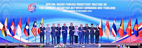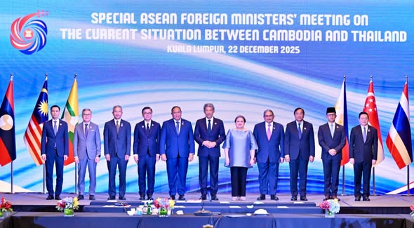 ວັນທີ 22 ທັນວາ 2025 ນີ້, ຢູ່ກົວລາລໍາເປີ ປະເທດມາເລເຊຍ, ທ່ານ ທອງສະຫວັນ ພົມວິຫານ ລັດຖະມົນຕີກະຊວງການຕ່າງປະເທດ ເເຫ່ງ ສປປ ລາວ ໄດ້ນໍາພາຄະນະຜູ້ເເທນ ເຂົ້າຮ່ວມກອງປະຊຸມລັດຖະມົນຕີຕ່າງປະເທດອາຊຽນ ສະໄໝພິເສດ ກ່ຽວກັບສະພາບການປັດຈຸບັນ ລະຫວ່າງ ກໍາປູເຈຍ ແລະ ໄທ ໂດຍການເປັນປະທານຂອງລັດຖະມົນຕີກະຊວງການຕ່າງປະເທດ ແຫ່ງມາເລເຊຍ ໃນນາມປະທານອາຊຽນ ປີ 2025, ມີບັນດາລັດຖະມົນຕີຕ່າງປະເທດອາຊຽນ, ຜູ້ຕາງໜ້າ ແລະ ເລຂາທິການໃຫຍ່ອາຊຽນ ເຂົ້າຮ່ວມ.