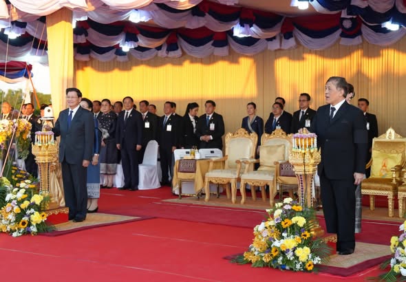 ພິທີເປີດການນໍາໃຊ້ຂົວມິດຕະພາບ ລາວ-ໄທ ແຫ່ງທີ V (ບໍລິຄໍາໄຊ-ບຶງການ) ຢ່າງເປັນທາງການ ຈັດຂຶ້ນໃນວັນທີ 25 ທັນວາ 2025 ຢູ່ເມືອງປາກຊັນ ແຂວງບໍລິຄໍາໄຊ ໂດຍການເປັນປະທານຮ່ວມ ລະຫວ່າງ ທ່ານ ທອງລຸນ ສີສຸລິດ ປະທານປະເທດ ແຫ່ງ ສາທາລະນະລັດ ປະຊາທິປະໄຕ ປະຊາຊົນລາວ ພ້ອມດ້ວຍພັນລະຍາ ແລະ ພະບາດສົມເດັດ ພຣະວະຊິຣະເກົ້າເຈົ້າຢູ່ຫົວ ແຫ່ງ ຣາຊະອານາຈັກໄທ ພ້ອມດ້ວຍພະລາຊິນີ, ມີນາຍົກລັດ ຖະມົນຕີ, ລັດຖະມົນຕີ, ຫົວໜ້າກົມ ແລະ ພາກສ່ວນກ່ຽວຂ້ອງ ຂອງສອງຝ່າຍ ລາວ-ໄທ ເຂົ້າຮ່ວມ.