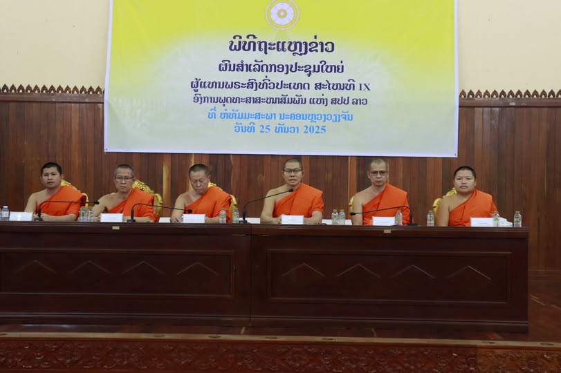 ພະອາຈານໃຫຍ່ ອະທິປະໄຕ ໄມຕີຈິດ ຮອງປະທານ, ຫົວໜ້າຫ້ອງການບໍລິຫານງານ ສູນກາງ ອພສ ແຫ່ງ ສປປ ລາວ ໄດ້ຖະແຫລງຂ່າວ ກ່ຽວກັບຜົນສຳເລັດຂອງກອງປະຊຸມໃຫຍ່ ຜູ້ແທນພະສົງທົ່ວປະເທດ ສະໄໝທີ IX ຂອງສູນກາງອົງການພຸດທະສາສະໜາສຳພັນແຫ່ງ ສປປ ລາວ ໃນຕອນບ່າຍວັນທີ 25 ທັນວາ 2025 ວ່າ: ກອງປະຊຸມໃຫຍ່ ໄດ້ຄົ້ນຄວ້າຢ່າງເລິກເຊິ່ງ ແລະ ໄດ້ຮັບຮອງເອົາຢ່າງເປັນເອກະພາບ ຕໍ່ບົດລາຍງານຜົນສຳເລັດການ ເຄື່ອນໄຫວວຽກງານຕະຫລອດໄລຍະ 5 ປີ, ກອງປະຊຸມໄດ້ສະແດງຄວາມເຫັນດີ ເປັນເອກະພາບຕໍ່ການສະຫລຸບຕີລາຄາຜົນການຈັດຕັ້ງປະຕິບັດ ມະຕິກອງປະຊຸມໃຫຍ່ຜູ້ແທນພະສົງທົ່ວປະເທດ ສະໄໝທີ VIII, ບັນດາຜົນງານອັນພົ້ນເດັ່ນທີ່ຍາດມາໄດ້ ໃນໄລຍະ 5 ປີ ຜ່ານມາ, ຊຶ່ງໄດ້ປະກອບຄຳເຫັນຢ່າງກົງໄປກົງມາ ແລະ ໄດ້ໄຈ້ແຍກຢ່າງເລິກເຊິ່ງ ບັນດາສາເຫດ ທີ່ພາໃຫ້ມີຂໍ້ຄົງຄ້າງ. ຈາກນັ້ນ, ກໍໄດ້ຮັບຮອງເອົາຂໍ້ສະຫລຸບຈຳນວນໜຶ່ງ ທີ່ເປັນບົດຮຽນທີ່ມີຄວາມໝາຍຄວາມສໍາຄັນ ສໍາລັບການສືບຕໍ່ຈັດຕັ້ງປະຕິບັດວຽກງານຂອງອົງການພຸດ ທະສາສະໜາສຳພັນແຫ່ງ ສປປ ລາວ ໃນຕໍ່ໜ້າ; ກອງປະຊຸມໄດ້ຮັບຮອງເອົາທິດທາງແຜນການ, ວຽກຈຸກສຸມ ແລະ ແຜນພັດທະນາອົງການພຸດທະສາສະໜາ 5 ປີຕໍ່ໜ້າ ຊຶ່ງປະກອບມີ 11 ວຽກຈຸດສຸມ, 7 ແຜນງານ, 24 ໂຄງການ, 58 ກິດຈະກຳ; ກອງປະຊຸມໄດ້ຮັບຟັງການປະກອບຄຳເຫັນ ຂອງບັນດາກະຊວງ-ອົງການ ລວມມີ 3 ພາກສ່ວນຄື: ກະຊວງ ວັດທະນະ ທຳ ແລະ ການທ່ອງທ່ຽວ; ຫ້ອງວ່າການສຳນັກງານນາຍົກລັດຖະມົນຕີ ແລະ ສູນກາງແນວລາວສ້າງຊາດ; ໄດ້ຄົ້ນ ຄວ້າ ແລະ ເປັນເອກະພາບສູງ ຮັບຮອງເອົາຄະນະບໍຣິຫານງານສູນກາງອົງການພຸດທະສາສະໜາສຳພັນ ແຫ່ງ ສປປ ລາວ ສະໄໝທີ IX ຈຳນວນ 99 ອົງ; ກອງປະຊຸມຄັ້ງປະຖົມມະລືກ ຄະນະບໍລິຫານງານສູນກາງອົງການພຸດທະສາສະໜາສຳພັນ ແຫ່ງສປປ ລາວ ສະໄໝທີ IX ໄດ້ຮັບຮອງຄະນະກຳມະການບໍລິຫານງານປະຈຳການ ຈຳນວນ 26 ອົງ ໂດຍໄດ້ຮັບຮອງເອົາ ພະອາຈານໃຫຍ່ ມະຫາເວດ ມະເສໄນ ເປັນປະທານສູນກາງອົງການພຸດທະສາສະໜາ ສຳ ພັນ ແຫ່ງ ສປປ ລາວ ແລະ ຮັບຮອງເອົາຮອງປະທານສູນກາງອົງການພຸດທະສາສະໜາສຳພັນ ແຫ່ງ ສປປ ລາວ ທັງໝົດ 8 ອົງ.