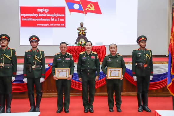 ຈາກນັ້ນ, ສະຫາຍ ພັນເອກ ພອນມີໄຊ ສີວົງຊໍາ ຫົວໜ້າກົມນະໂຍບາຍ ກົມໃຫຍ່ການເມືອງກອງທັບ ໄດ້ຜ່ານຂໍ້ຕົກລົງວ່າດ້ວຍການມອບຫຼຽນໄຊພິລະອາດຫານ ແລະ ໃບຍ້ອງຍໍ ເພື່ອຍ້ອງຍໍໃຫ້ແກ່ຄະນະຮັບຜິດຊອບ ແລະ ຄະນະນັກກິລາທີ່ເຂົ້າຮ່ວມການເເຂ່ງຂັນງານມະຫາກຳກິລາແຫ່ງຊາດຄັ້ງທີ XII ທີ່ນະຄອນຫຼວງວຽງຈັນ ເປັນເຈົ້າພາບ ລະຫວ່າງວັນທີ 15-25 ພະຈິກ 2025, ເຊິ່ງໄດ້ປະກອບສ່ວນ ຢ່າງຕັ້ງໜ້າໃນການປະຕິບັດໜ້າທີ່ ສໍາເລັດຕາມແຜນການ. ກະຊວງປ້ອງກັນປະເທດ ຕົກລົງ: ມອບຫຼຽນໄຊພິລະອາດຫານ ຊັ້ນ III ໃຫ້ ກອງກິລາກອງທັບ, ກົມອົບຮົມ ກົມໃຫຍ່ເສນາທິການກອງທັບ ແລະ ບຸກຄົນ 263 ສະຫາຍ, ມອບໃບຍ້ອງຍໍກະຊວງປ້ອງກັນປະເທຈຳນວນ 53 ສະຫາຍ, ມອບໃບຍ້ອງຍໍກົມໃຫຍ່ການເມືອງກອງທັບ ຈໍານວນ 40 ສະຫາຍ, ພ້ອມນັ້ນ ກໍໄດ້ຍ້ອງຍໍຜົນງານ ໃຫ້ແກ່ຄະນະນັກກິລາທີ່ເຂົ້າຮ່ວມແຂ່ງຂັນກິລາຍິງປືນທາງດ້ານຍຸດທະວິທີກອງທັບບົກອາຊຽນ ຄັ້ງທີ 33 ປີ 2025 ທີ່ ປະເທດສິງກະໂປ. ກະຊວງປ້ອງກັນປະເທດ ຕົກລົງ: ມອບຫຼຽນໄຊພິລະອາດຫານ ຊັ້ນ III ໃຫ້ຈໍານວນ 16 ສະຫາຍ, ມອບໃບຍ້ອງຍໍກະຊວງປ້ອງກັນປະເທດ ຈຳນວນ 21 ສະຫາຍ ແລະ ມອບໃບຍ້ອງຍໍກົມໃຫຍ່ການເມືອງກອງທັບຈຳນວນ 10 ສະຫາຍ. ພ້ອມນີ້, ຍັງໄດ້ມອບເງິນອັດສີດຫຼຽນລາງວັນໃຫ້ທັບນັກກິລາກະຊວງປ້ອງກັນປະເທດ 20 ປະເພດກິລາ ຈໍານວນ 5.600.000.000 ກີບ (ຫ້າຕື້ຫົກຮ້ອຍລ້ານກີບ) ແລະ 68 ສະຫາຍທີ່ບໍ່ໄດ້ຮັບຫຼຽນລາງວັນ ຈຳນວນ 102.000.000 ກີບ (ໜຶ່ງຮ້ອຍສອງລ້ານກີບ) ແລະ ເງິນອັດສີດຫຼຽນລາງວັນກິລາຍິງປືນທາງດ້ານຍຸດທະວິທີກອງທັບບົກອາຊຽນ ຄັ້ງທີ 33 ຈໍານວນ 56.000.000 ກີບ (ຫ້າສິບຫົກລ້ານກີບ).