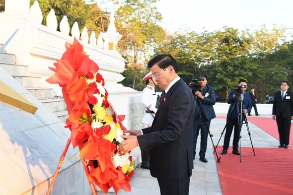 ການວາງພວງມາລາ ແລະ ກະຕ່າດອກໄມ້ ໃນຄັ້ງນີ້, ເປັນການສະແດງເຖິງຄວາມເຄົາລົບຮັກ, ຄວາມກະຕັນຍູ ຮູ້ບຸນຄຸນ ເຖິງຄຸນງາມຄວາມດີ, ນໍ້າໃຈຕໍ່ສູ້ຢ່າງພິລະອາດຫານ ແລະ ບໍ່ຍອມຈໍານົນຂອງບັນພະບູລຸດລາວ ກໍຄືບັນດານັກຮົບປະຕິວັດຂອງລາວ ທີ່ເສຍສະລະຊີວິດ, ເລືອດເນື້ອ ເພື່ອພາລະກິດປະຕິວັດ ຢ່າງອົງອາດກ້າຫານ ພາຍໃຕ້ການນຳພາ-ຊີ້ນຳຂອງພັກປະຊາຊົນ ປະຕິວັດລາວ ຈົນສາມາດຍາດໄດ້ໄຊຊະນະຢ່າງສົມບູນ ແລະ ປະກາດເອກະລາດ, ສະຖາປະນາເປັນ ສາທາລະນະລັດ ປະຊາທິປະໄຕ ປະຊາຊົນລາວ ໃນວັນທີ 2 ທັນວາ 1975.