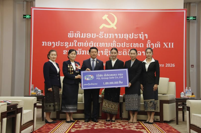 ບໍລິສັດພີເອັດສແອວກຣຸບ ມອບເງິນ 1 ຕື້ກວ່າກີບອຸປະຖໍາກອງປະຊຸມໃຫຍ່ ຄັ້ງທີ XII ຂອງພັກ