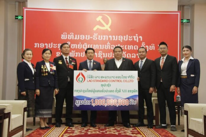ບໍລິສັດລາວສະແຕນດາດຄອນໂທຣ ມອບເງິນ 1 ຕື້ກີບອຸປະຖໍາກອງປະຊຸມໃຫຍ່ ຄັ້ງທີ XII ຂອງພັກ